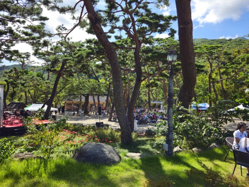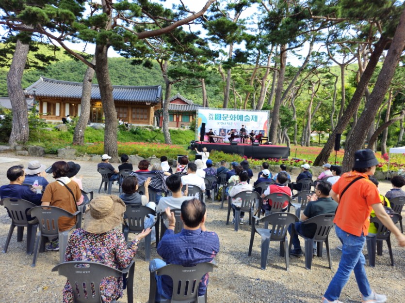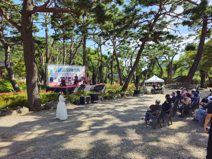 ‘보경사 작은 힐링 음악회’를 부제로 진행된 예술제는 5인조 친친탱고팀과 포항지역에서 활동하고 있는 6인조 포먼트 팀은 산사의 깊은 서정을 음악으로 담아 관객들과 하나가 됐다.