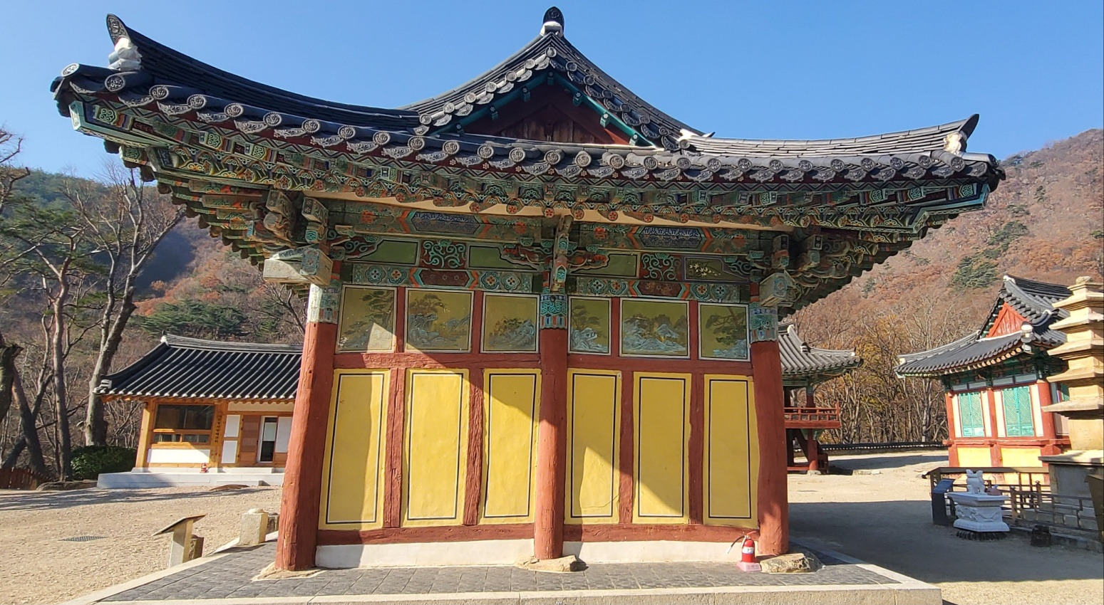 구조로는 정면 3칸, 측면 2칸의 단층 팔작지붕으로 가운데 칸은 통로칸으로 삼고, 쌍여닫이 띠장널문을 달았는데, 진입영역의 산문(山門)이라기 보다는 중심 주불전 영역의 정문으로서 상징성을 갖추고 있다.