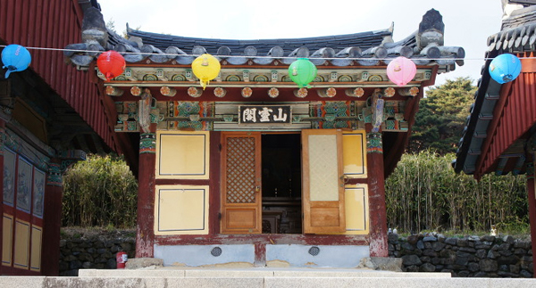 이 전각은 원래 여기서 북쪽으로 100M 산록에 있던 것을 AD1914년에 현장소로 이건하였다.
