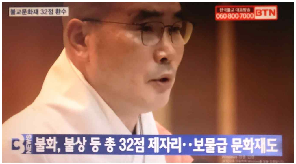 도난 불교문화재 피해사찰협의회와 불교문화유산환수를 위해 노력하고 있는 조계종 총무원 문화부장이신 포항 보경사 주지 탄원스님은 데일리 임펙트에서 "이번 도난 성보 32점의 환수는 종단과 문화재청, 경찰청 등 여러 기관의 노력과 의지를 모아 이루어낸 값진 성과"라면서 “도난당한 성보가 마침내 환지본처(還至本處)하는 뜻이 깊으며, 종단 소임자이면서 동시에 도난 피해 사찰 중 하나인 보경사의 주지로서 더욱 감개무량하다"고 전했다.